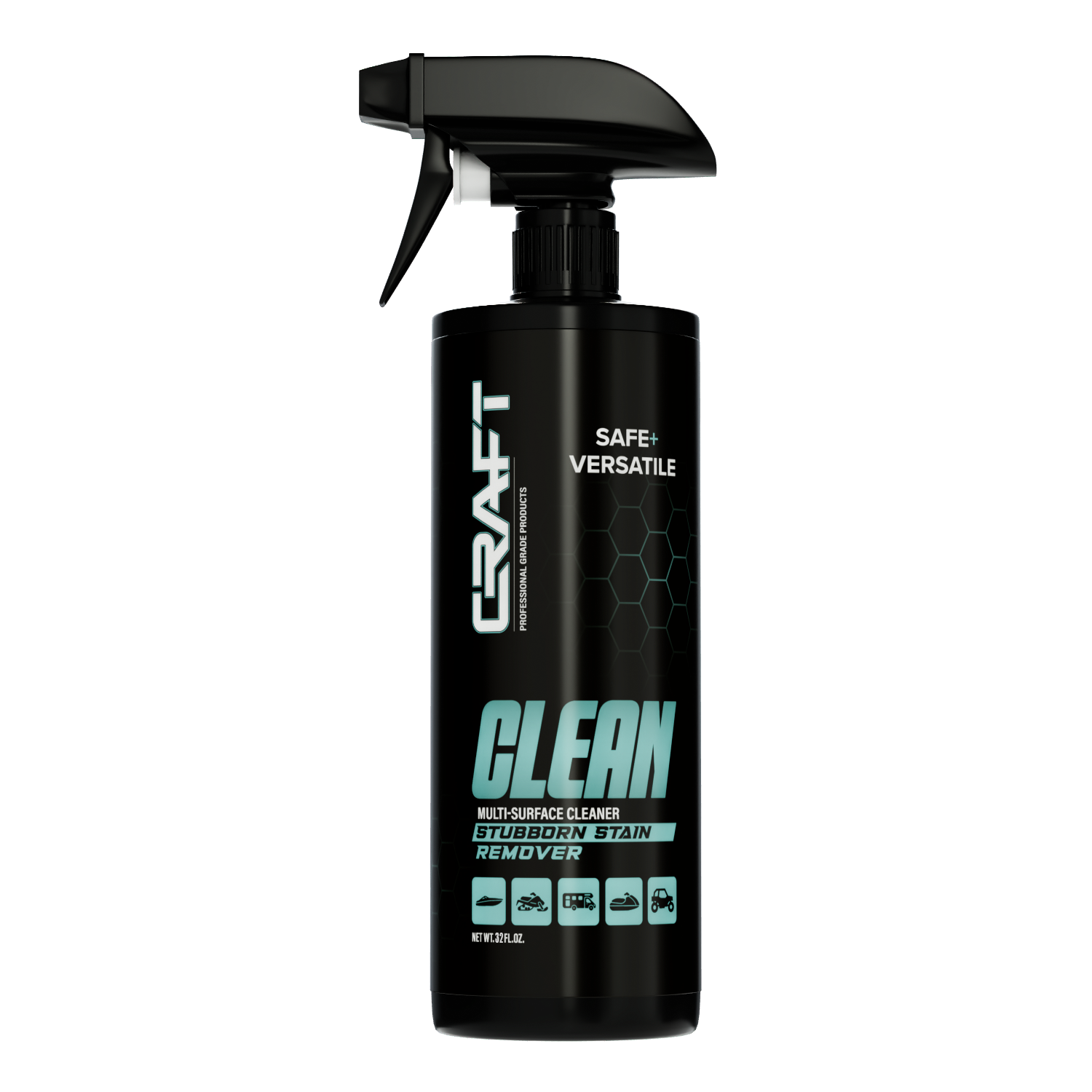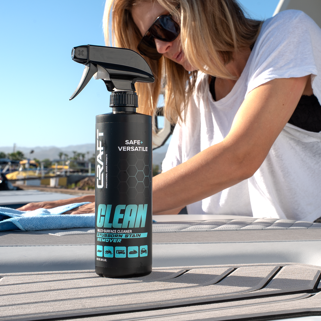 Some Stains don’t give up easily, but neither does CRAFT CLEAN. This concentrated alcohol-free formula is specially CRAFTED to break down dirt and wipe away tough stains. This safe and versatile formula can be used on any water safe surface. Use it for multiple purposes including your boat, RV, jet ski, ATV or wherever mess shows up. One use brings surfaces back to life, looking brighter and new.